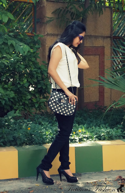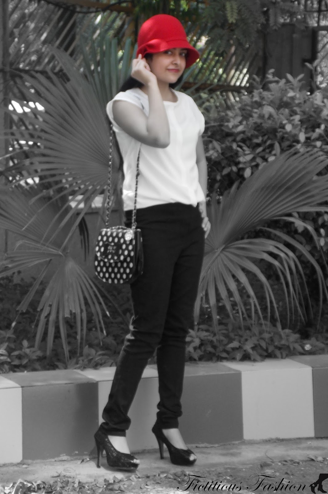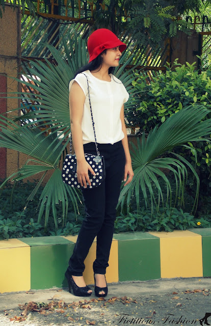 I'm wearing this beautiful Red Bowknot Hat, Hair Garland and sunglasses from none other than Choies. Nothing beaths Black and White combination than RED. So I chose to apply Viviana Lipstick (my first, a gift). Tossed this look with my favorite pair of black peep-toe pumps and polka dot bag.
