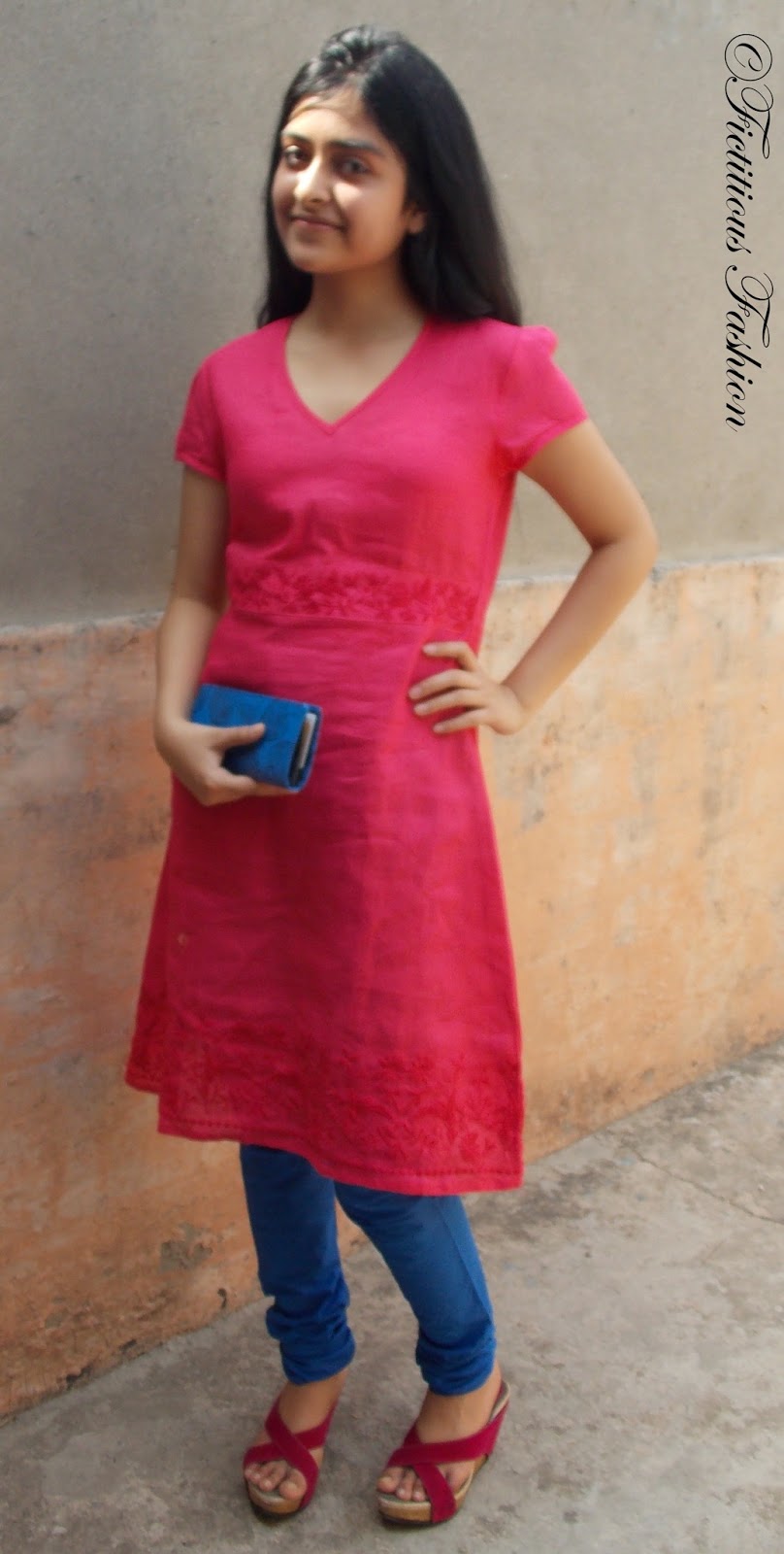 Pink Tunic/Kurti and Blue Bottoms/Churidar- Melange